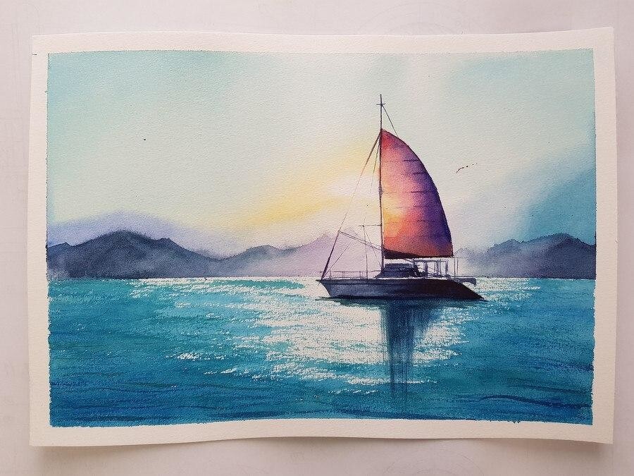 Experience your first watercolor artwork and paint this magical boat