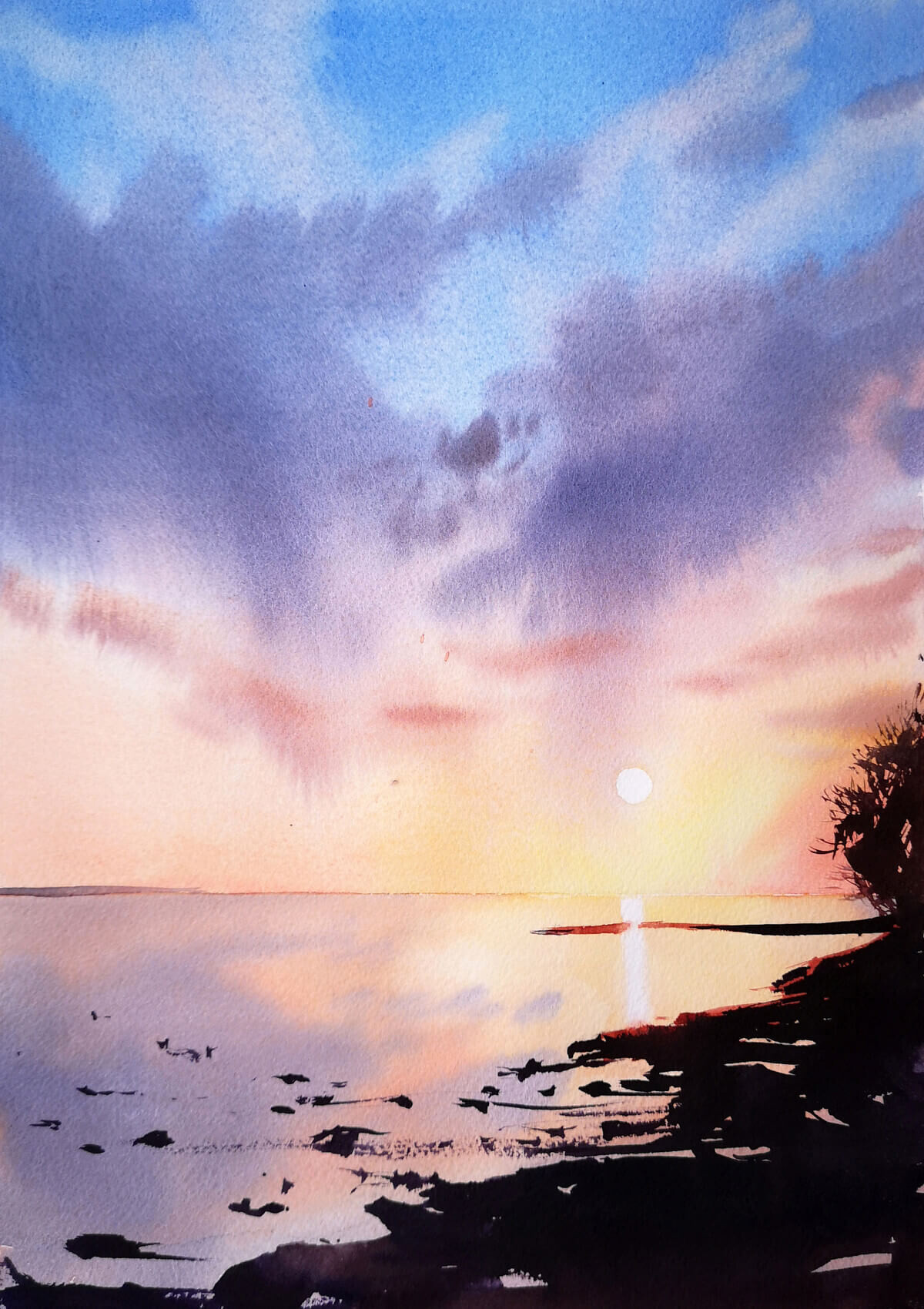 For that reason, it is really important to start your journey with “Watercolor. Beginning” course. First, you will need to learn all fundamental techniques and effects, and only then get into more complex compositions.